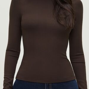 NWT - Dynamite Mock Neck Long Sleeve Top - Chocolate Brown