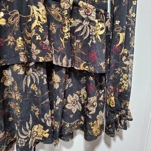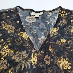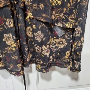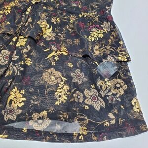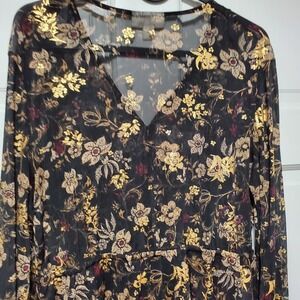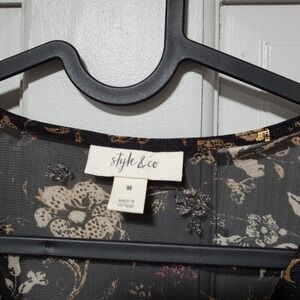 Style & Co Womens Blouse Size Medium Black Metallic Floral Ruffled Cottaggecore