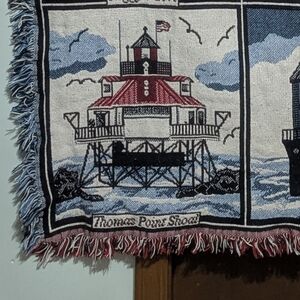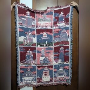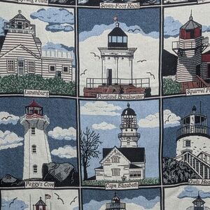 Vintage Goodwin Weavers 100% Cotton Lighthouse Tapestry Throw Blanket 63″x44″