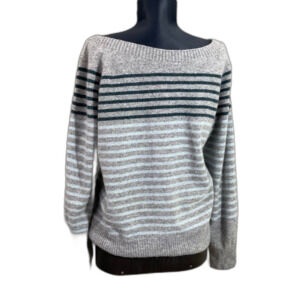 Celtic & Co 100% Lambs Wool Sweater women’s Size M gray Green blue stripes
