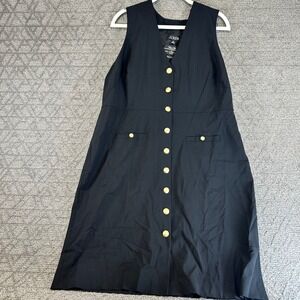 J Crew Tollegno 1900 Italian Wool Black Sleeveless Button Front Dress Size 20