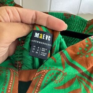 Anthropologie Maeve green puff sleeves floral sweetheart midi dress 2 vacation