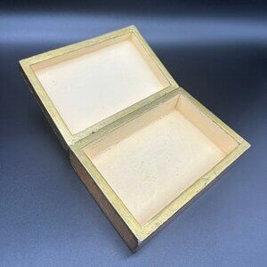 Vintage Italian Hand Painted Wood Jewelry Trinket Box Pink Flowers Gold Stash