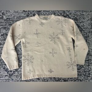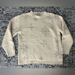 100% wool cream colored sweater with snow flake design