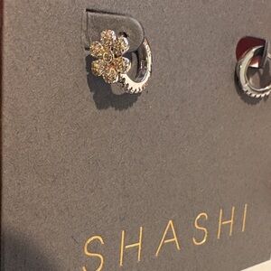 Chic SHASHI earrings with a gold and silver plated floral motif. Ideal for enhancing any ensemble.