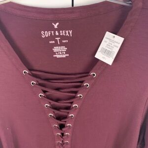 NWT American Eagle LARGE Soft Sexy Purple Lace Up V-Neck Long Sleeve Shirt Date