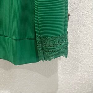 Green Ribbed Long Sleeve Top with Lace Trim | Easy Everyday Fit | NWT