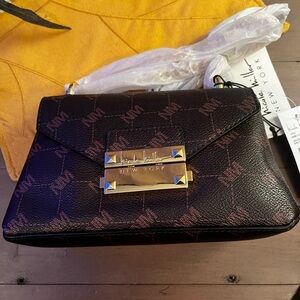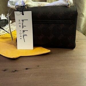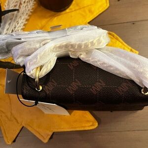 Elegant brown designer women's bag with gold accents. Perfect for any occasion. Such a cute bag with unique closure! Smokefree home, thank you so much for looking:)