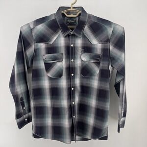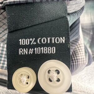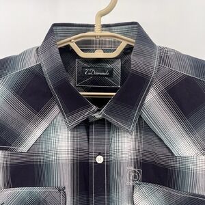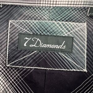 7 Diamond Shirt Mens Large Blue Green Plaid Button Up XXL Cotton Long Sleeve