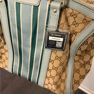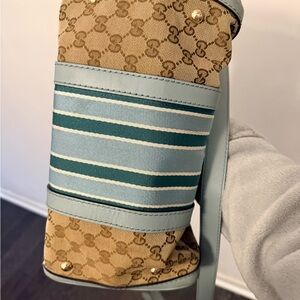 Gucci Tan and Blue Satchel