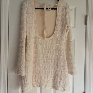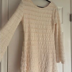 Textured White Long Sleeve Dress