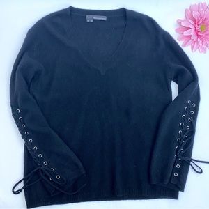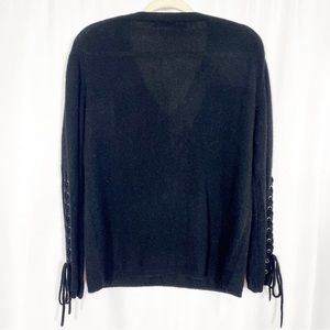 EUC 360 Cashmere Numi Cashmere Lace Up Sleeves Jumper V Neck Sweater: Black.