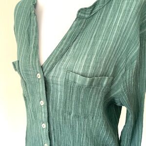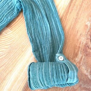 Stylish teal button down shirt. Lightweight and versatile. Ideal for casual outings.