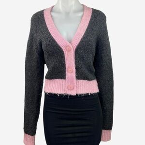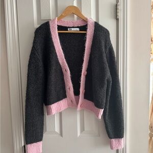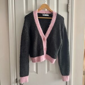 Chic and cozy, this gray and pink sweater is perfect for any occasion. Its soft fabric ensures comfort and style.
