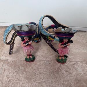 Step into wearable art. These one-of-a-kind statement sandals feature a bold, colorful design with a sculptural figurine heel that instantly turns heads. Perfect for collectors, fashion lovers, or anyone who refuses to blend in.