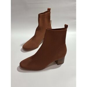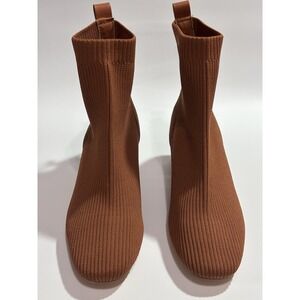 Joie Ribbed Knit Stretchy Neely Block Heel Sock Ankle Boots Toffee Sz 6.5