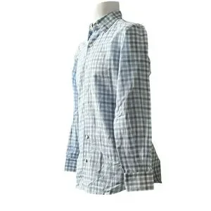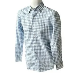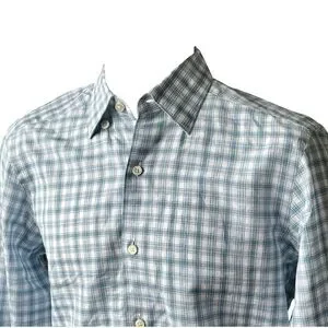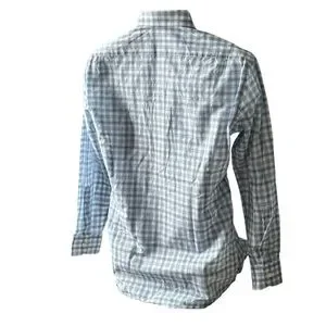 Ermenegildo Zegna Cotton Linen Check Shirt Blue White Small 14.5