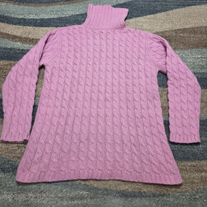 L.L. Bean Women’s Pink Cable Knit Turtleneck Sweater Size Medium Wool
