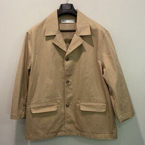 Zara women's Tan Short Trench Buttoned Jacket Size Xlarge