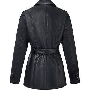 Women Black Leather Blazer Jacket Vegan leather Lapel Button Down Casual Coat