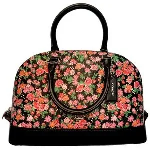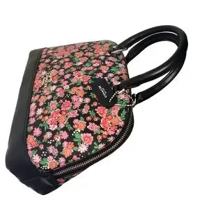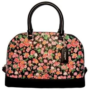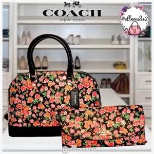 COACH Sierra Posey Cluster Floral Coated Canvas Satchel Bag Black/Pink comes with free wallet and crossbody strap.