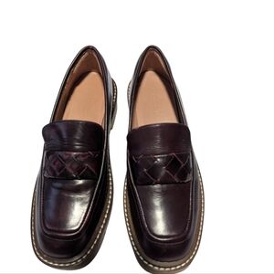Nordstrom Burgundy Chunky Platform Leather Slip On Penny Loafers Women's Size 7