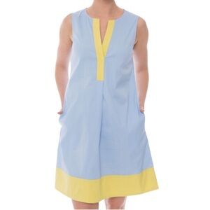 Rosso35 Blue & Yellow Henley Popover Dress Sleeveless Split Neck