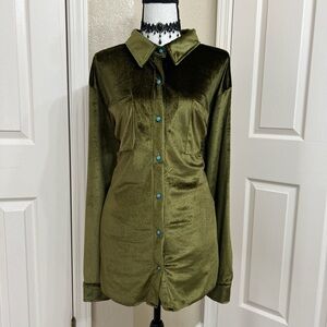 Add a pop of color to your wardrobe with this beautiful green velvet blouse from two2 fly,Featuring a collared neckline and button closure, this blouse is perfect for a casual occasion. The long sleeves and regular fit make it suitable for plus-sized women, while the pockets add a touch of practicality. The solid pattern and colorful theme make it a versatile piece for any season, whether it's summer, fall, or spring. Made of high-quality polyester and satin fabric, this blouse is sure to become a staple in your wardrobe.