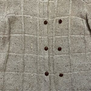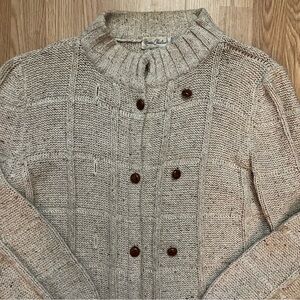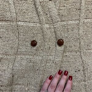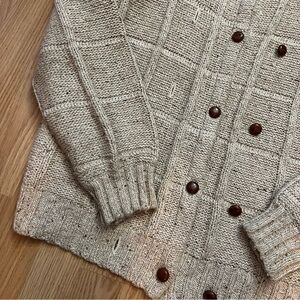Absolutely beautiful vintage chunky knit double breasted sweater cardigan. Some wear on back of collar-pictured- besides that this piece is perfect.