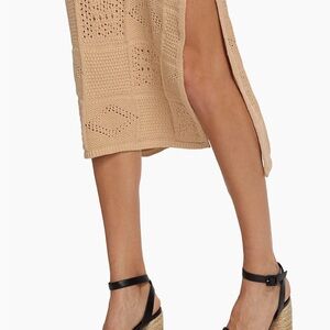 Kivari's Clementine midi-skirt is crafted of cotton knit. This patchwork-inspired style features a scoopneck, an elongating thigh-high slit.