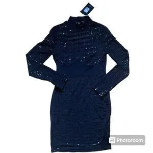 Fashion Nova Mini Dress Black Sequin Long Sleeves Women Size Large New With Tag