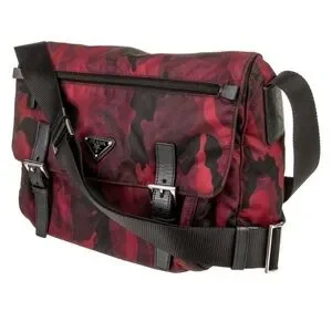 100% Authentic Prada Red Camouflage Nylon Messenger Bag.