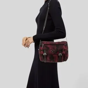 100% Authentic Prada Red Camouflage Nylon Messenger Bag