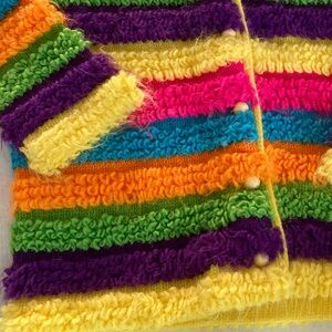 Vintage Susan Clark cardigan with multicolor stripes. Features a button-up front.