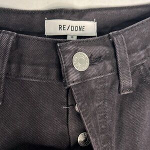 Re/Done Women’s black raw hem with slit at ankles skinny boot jeans button fly size 26. Very gently pre-owned condition 100% cotton. More item description in last pic. Check out all pics and comment below with any questions