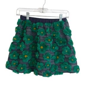 Queen of Sparkles fur flower skirt and top set. Top is a pink, yellow, gray cropped, puffed sleeve top with fur flowers. Skirt is green, white gray pull on skirt with elastic waistband and built in shorts. Preowned but in good condition. Skirt missing brand tag.