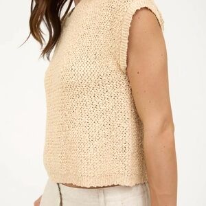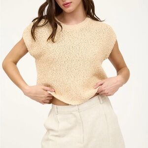 CREW NECKLINE SHORT SLEEVES RIBBED TRIM PATTERN TEXTURED KNIT CROCHET KNIT SWEATER TOP SOLID NOT LINED 100% COTTON