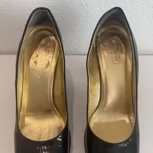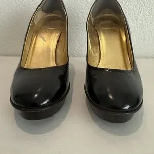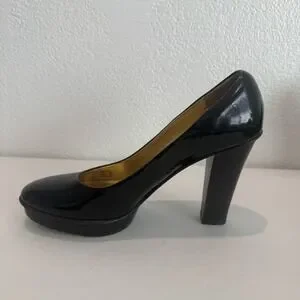 Vintage Coach Womens Pump Size 9 Black Patent Block Heel Platform Shoe Mob Wife
