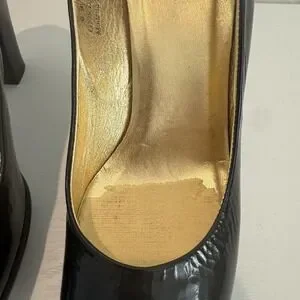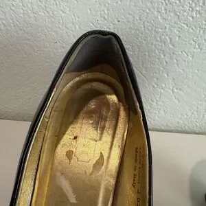 Good vintage condition. There is residue from heel cushion from previous wear and on the front toe area. Can be removed. Please see all photos for exact item condition.