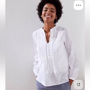 LOFT Tie neck tasseled bib blouse- worn once- excellent condition