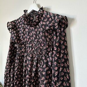 NWOT Scotch & Soda Ruffle Floral Black Top Size S