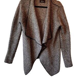 ZARA Sweater Cardigan Small Herringbone Dark Brown Black Open Front
