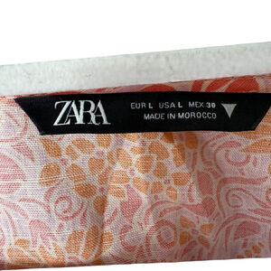 Zara Vibrant Pink and Orange Floral Blouse Size L Boho Cottagecore Chic Resort