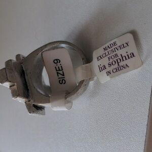 Lia Sophia Ring Chunky Art Deco Crystal Gunmetal Ring Sz 9 Silvertone NWT VTG