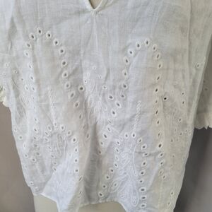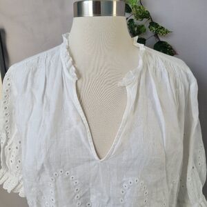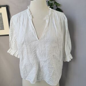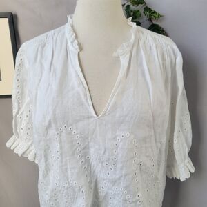 AYR Allora Embroidered Eyelet Linen Blouse White M