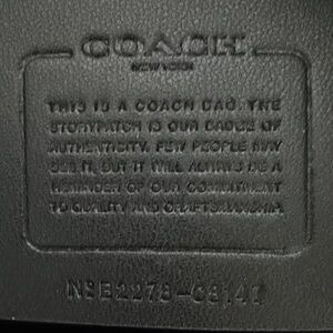 Sleek black leather tote by Coach. Features chain strap accents. Perfect for everyday use.