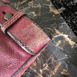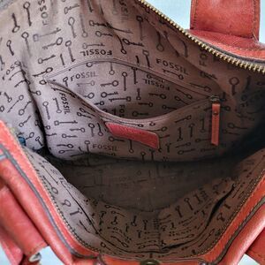 Fossil Leather Keyhole Tote Shoulder Bag in Red 17x10x4 Distressed Discoloration