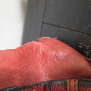 Distressed discoloration scratches throughout and fraying on handle please view all photos