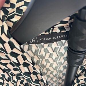 Adrianna Papell Green, Blk, Pink & White Geometric Print Office Top Women’s S