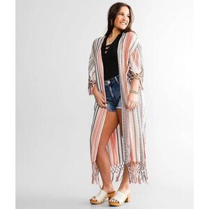 Ariat Sunset Fringe Kimono Pink Southwestern Print Duster Cardigan